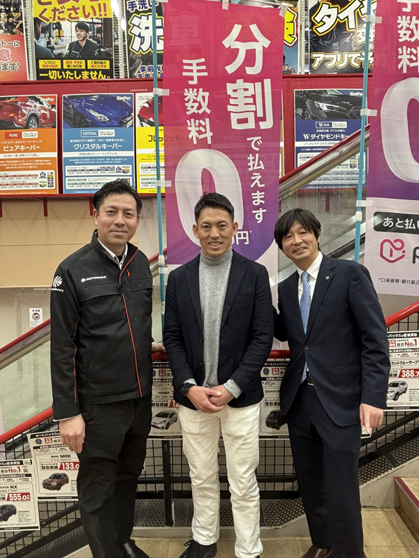 左からバッファロー スーパーオートバックスTODA ストアマネージャー 武井誠志氏、Paidy VP of Partner Alliance 臨光政孝氏、バッファロー 取締役常務執行役員 営業副本部長 牧野博章氏