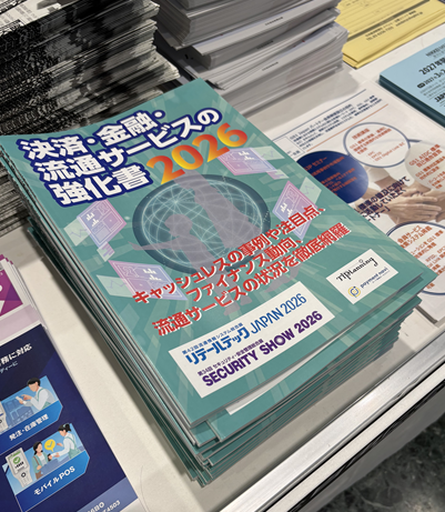 会場では、特製の冊子「決済・金融・流通サービスの強化書2026」を無料配布しています。会場入り口、および弊社ブースで配布。全12章にわたり有益な内容が紹介されております。